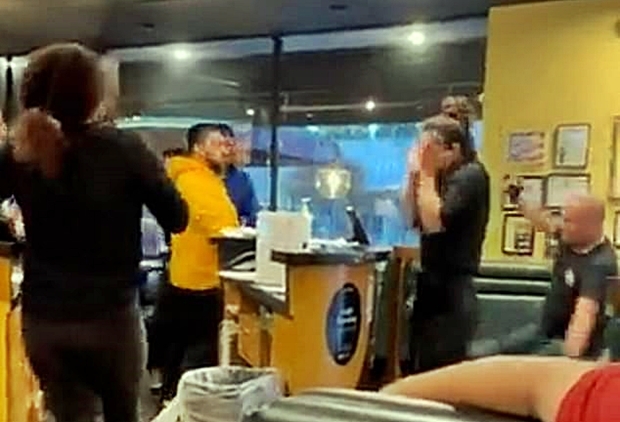 美 한인식당 노마스크 진상손님, 노인 괴롭히다 청년 주먹 한 방에 깨갱 (영상)