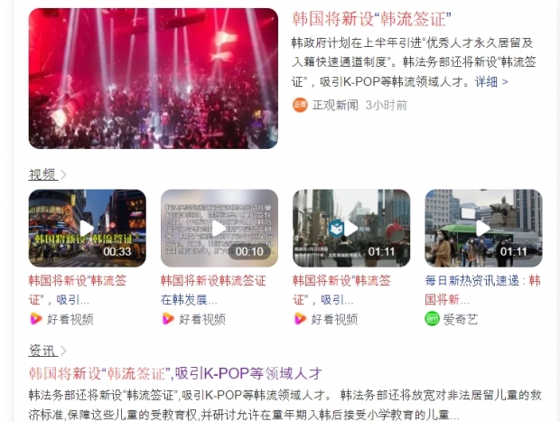 중국 유력매체 시나뉴스 등 다수의 언론들은 일명 ‘한류 비자’로 불리며 K-POP 등 문화 분야 인재 유치를 목적으로 한 한국의 비자 신설 소식을 2일 일제히 전했다.