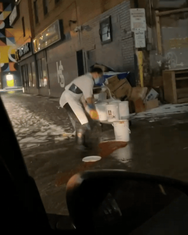 중국인 직원은 하루 전 식당 밖 재료 트럭에서 양념통을 꺼내 카트에 싣고 가다 눈길에 미끄러졌다. 그 바람에 통 안에 있던 양념이 길바닥에 쏟아졌다. 직원은 엎질러진 양념을 손으로 퍼 올려 다시 통에 담았다. 그리곤 양념통을 챙겨 식당 안으로 들어갔다. 그 장면을 목격한 엘리샤 포만빌르는 “역겹다. 다시는 여기서 밥 먹지 말자”는 말과 함께 관련 동영상을 자신의 소셜 네트워크 서비스(SNS)에 올렸다.
