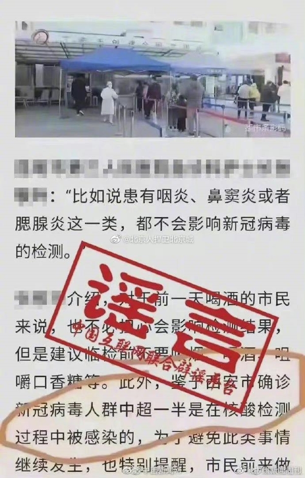 중국 대표 SNS 웨이보에는 이미 "시안시 코로나19 확진자 중 최소한 절반 이상이 핵산 검사 과정에서 감염됐다", "시안 주민 800여 명이 사막 근처의 낯선 지역에 강제로 격리돼 방치됐다", "시안 주민 중 80세 이상 노인들이 고의로 핵산 검사를 피했다", "이 지역 간부 일부가 죄를 뒤집어 쓰고 강물에 투신해 자살했다"는 소문이 번졌다. 특정 지역 아파트 이름까지 거론되면서 상당수 누리꾼은 소문을 진실이라고 믿고 있다.