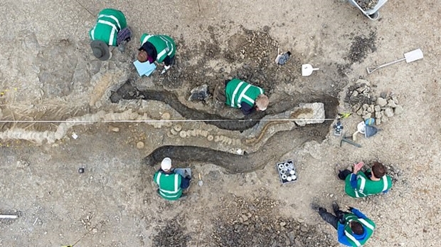 화석은 지난해 2월 현지 상수도회사 소유 자연보호구역에서 처음 발견됐다. 저수지 증·개축을 위해 물을 빼는 과정에서 드러난 약 10m 길이 화석은 템노돈토사우루스 트리고노돈의 것이었다.