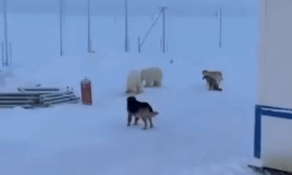 갑작스러운 곰의 등장에 현장 근로자들은 놀랐지만 앙상하게 마른 북극곰들을 외면할 수 없어 음식을 나눠줬다.