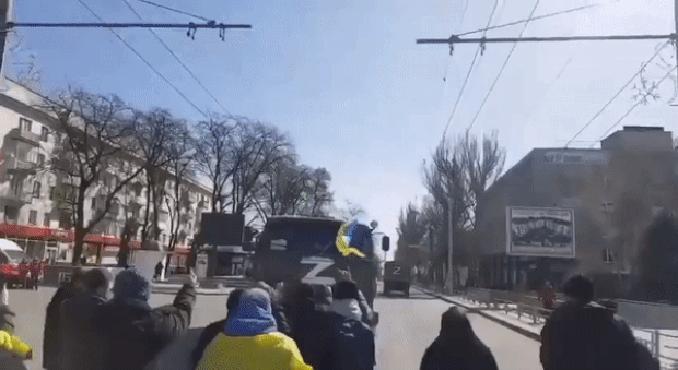 “우리 땅이다!” 헤르손 장악한 Z탱크, 시민 맨몸 저항에 줄행랑 [영상]