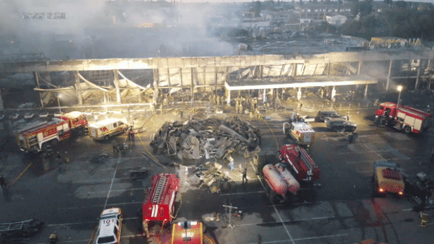 우크라이나 국가비상대책본부(DSNS)는 밤샘 진화 작업 끝에 쇼핑센터 불길을 잡았다. 현재는 구조대원과 자원봉사자 등 440명이 건물 잔해를 파헤쳐가며 긴급구조작업을 벌이고 있다. 우크라 비대본은 “28일 7시 현재까지 사망자는 18명, 부상자는 59명으로 집계됐다. 부상자 중 25명은 중환자실 입원 중”이라고 밝혔다. 구조 상황에 따라 사상자는 앞으로 더 늘어날 가능성이 크다.