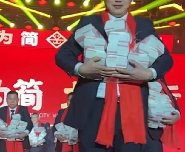“들고가라”…현금을 산처럼 쌓아놓고 직원들에 포상금 준 中 회사