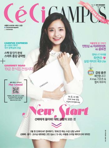 쎄씨 캠퍼스 12월호의 표지는 tvN 시트콤 ‘감자별’을 통해 엉뚱하지만 사랑스러운 매력을 발산하고 있는 신예 배우 ‘하연수’가 장식했다. 삼성 아티브북 9 Lite와 함께한 화보에서 하연수는 특유의 순수한 느낌을 살려 풋풋한 새내기 모습을 그대로 재현했다.
