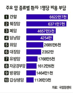 국립 암 센터가 코리아리서치를 통해 암에 대한 인식도를 조사한 결과에 따르면 (전국 성인남녀 1000명 기준) 전체 응답자의 30.7%가 ‘치료비 부담’을 가장 큰 걱정으로 생각하는 것으로 나타났다. 또한 ‘가정붕괴’ 걱정하는 이들도 9.3%로 나타났다.