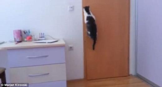 무려 5번…스스로 문여는 고양이 화제