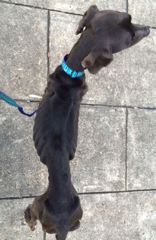 미국 뉴욕데일리뉴스 등 현지 언론의 24일자 보도에 따르면, 최근 뉴올리언스에서 구조된 이 개는 오래된 굶주림으로 허리가 한줌밖에 되지 않을 만큼 마른 상태였다.