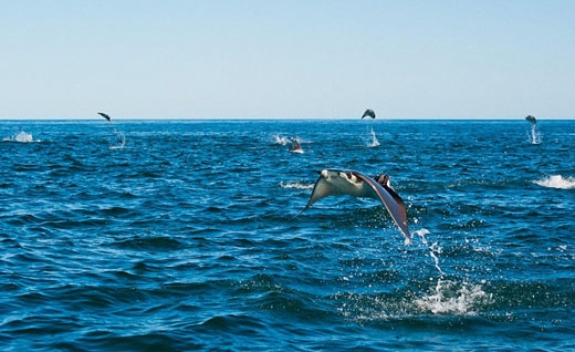 최근 미국 스크립스 해양연구소 교수이자 수중 전문 사진작가로 명성을 얻고있는 멕시코 출신의 옥타비오 아버토(41)가 수많은 가오리의 점프 모습을 촬영해 언론에 공개했다.