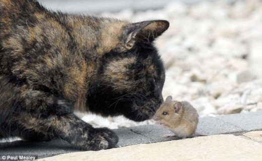 서로 애정표현(?)하는 고양이와 쥐 모습 (포토)