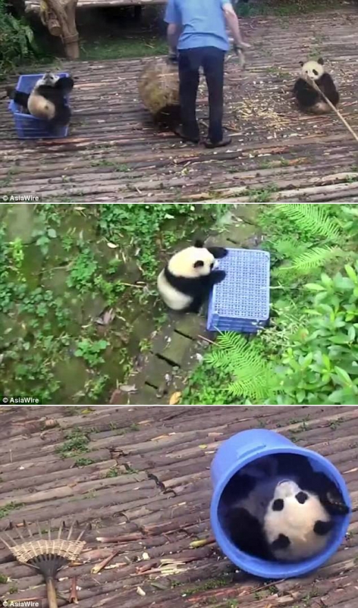 이때 사육사는 이전의 한바탕 소동으로 진이 다 빠진 것인지 자기 일만 묵묵히 하고 있지만, 야 윈이라는 이름의 한 판다는 뭐가 그렇게 좋은지 동그란 플라스틱 양동이에 관심을 보이다가 그 안에 들어가 마치 다람쥐통 놀이 기구를 타듯 굴리며 놀면서 영상은 끝이 난다.