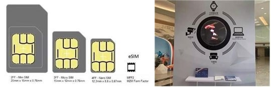 e-SIM의 e는‘내장형'(embedded)을 의미하는 것으로 SIM에 담길 인증정보가 암호화된 상태에서 기기 내부에 탑재된 서비스다. 특히 최근 중국에서 상용화에 성공한 ‘e-SIM’은 과거 외장형 심카드였던 △SIM-card △MINI SIM △MICRO-SIM △NANO SIM 등의 단계를 거쳐 발전을 거듭해온 형태라는 평가다. 최근 중국에서 공개된 eSIM의 크기는 기존의 가장 앞선 기술로 알려졌던‘NANO-SIM’과 비교해 약 1/3에 불과할 정도로 축소된 크기다.