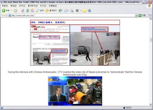 한편 네티즌들에 의해 만들어진 ‘anti-CNN.com’에는 지금도 CNN의 티베트시위 관련 보도 중 지적을 받았던 기사와 동영상 등이 올려져 있다.