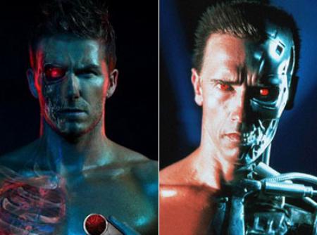 미남 축구스타 데이비드 베컴(34. AC밀란)이 사이보그 영웅 ‘터미네이터’를 재현해 화제를 모으고 있다.