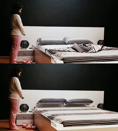 사용자 입장에서는 일어난 후 잠자리를 정리할 필요가 없어진 셈. 이 침대는 사용자가 침대에서 일어난 것을 인지하고 자동으로 침구를 정리하는 자동모드와 사용자가 직접 정리를 지시하는 수동모드로 작동된다.