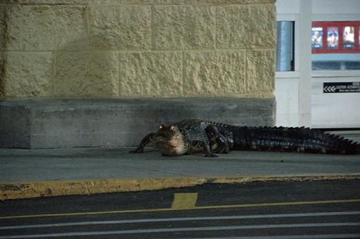 미국 플로리다주 오렌지카운티 아폽카에 있는 한 마트에서 쇼핑을 마치고 나가려던 손님이 현관 문 앞에 있는 악어를 발견했다.