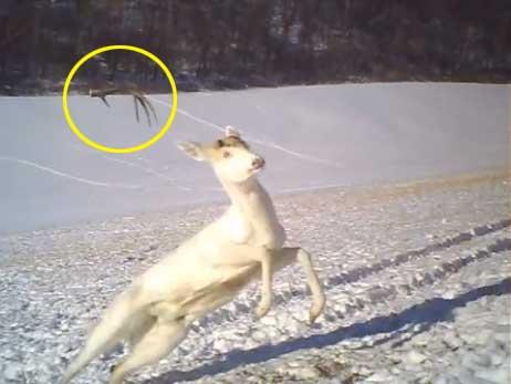 스스로 뿔 떨어뜨리는 알비노 사슴 포착