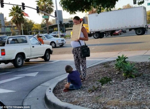 어린 소년을 데리고 구걸해 안타까움을 주던 임신부가 벤츠를 타고 고급 아파트에 사는 것으로 드러나 미국인들을 분노케 하고있다.