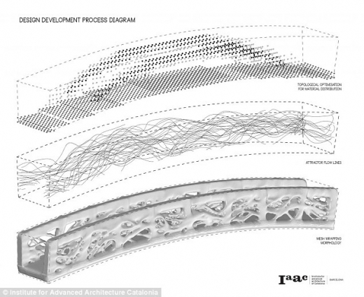 스페인 바르셀로나의 카탈루니아고등건축연구소(IAAC)가 제작한 이 육교는 3D프린터로 제작한 세계 최초의 육교로, 길이는 12m 폭은 1.75m다.