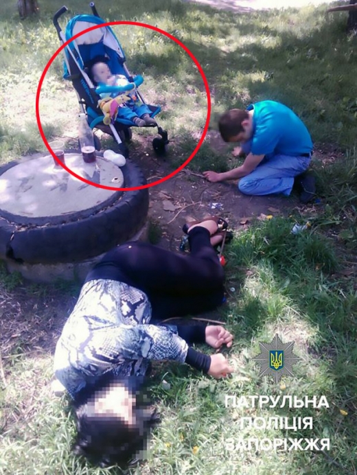 우크라이나 남서부 자포로제에서 찍힌 문제의 영상은 한 여성과 남성이 공원 근처 길거리에 쓰러져 잠을 자고 있고, 그 곁에는 아직 걷지도 못하는 갓난아기가 아스팔트 바닥에 엎드려 있는 모습을 담고 있다.