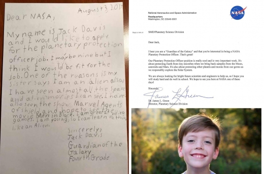 놀라운 것은 NASA가 소년의 이력서를 장난이라 치부하고 쓰레기통에 버리지 않았다는 사실이다. 담당부서 책임자인 제임스 L. 그린 박사는 잭에게 보내는 답장을 통해 "우리는 항상 미래의 전도유망한 과학자와 엔지니어를 찾고있다"면서 "학교에서 열심히 공부해 언젠가 NASA에 볼 날을 기다리겠다"고 밝혔다.