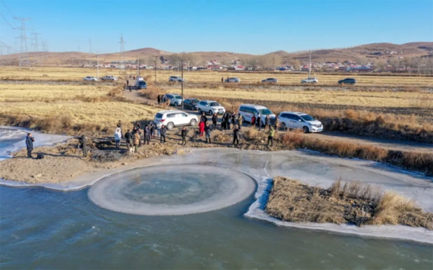 2일 우란하오터시 중심에서 남쪽으로 20㎞ 떨어진 마을 주민들이 강가로 몰려들었다. 넌강 지류인 타오얼강에 생긴 신기한 얼음 원반을 보기 위해서였다. 강 가장자리에 형성된 지름 10m 얼음 원반은 시계 반대방향으로 느리게 회전하고 있다.