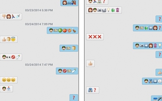 이렇게 이모티콘 대화가 시작됐지만 역시나 많은 소통의 장애가 일어났다. 예를들어 ‘친구와 술마시러 간다’는 ‘친구가 막 죽었다’ 등 대화 전달의 왜곡이 일어난 것. 그러나 의외로 이모티콘 대화가 깊지는 않지만 간단한 소통 정도는 가능하다는 것이 커플의 설명.