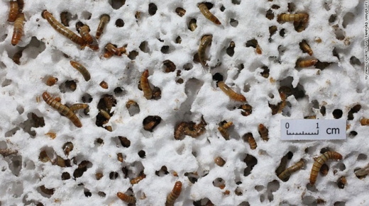 이 유충이 플라스틱을 이렇듯 ‘먹이’ 삼을 수 있는 것은 유충의 내장에 살고 있는 미생물 덕분인 것으로 알려졌다. 현재 연구팀의 연구실에선 100마리 유충이 하루 34~39㎎의 스티로폼을 먹으며 살고 있다.
