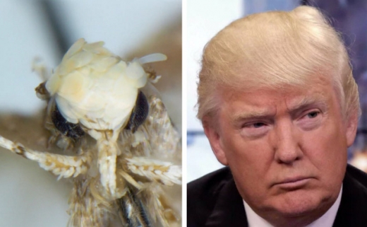 '네오팔라 도널드트럼피'(Neopalpa Donaldtrumpi)라는 정식 학명이 붙은 이 나방은 묘하게 트럼프와 닮은 꼴이다. 머리의 노란색은 트럼프의 트레이드 마크인 금발머리를 연상시키고 쏘아보는 듯한 눈매도 마찬가지다. 또한 도널드트럼피 나방의 주 서식지 역시 트럼프가 사는 캘리포니아주다.