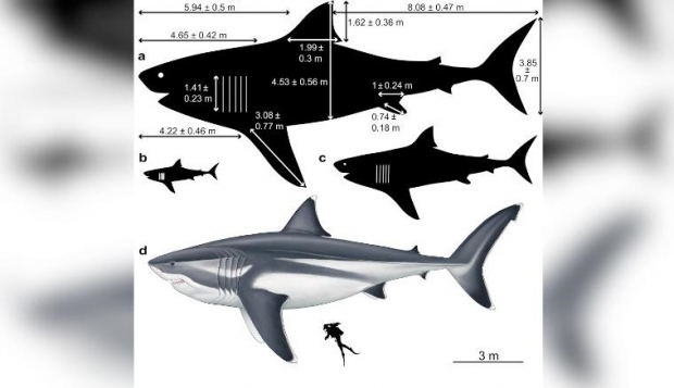 이번 연구는 과거 발견된 메갈로돈의 희귀한 이빨 화석을 바탕으로 실제 사이즈를 수학적 계산을 동원해 밝혀낸 것으로 그 크기는 예상을 뛰어넘는다. 연구팀에 따르면 메갈로돈의 실제 길이는 약 16m로 무게는 무려 48톤에 육박한다. 이 정도면 현재 바다를 주름잡는 거대한 백상아리의 2배 이상 크기다. 또한 메갈로돈의 머리는 약 4.65m, 꼬리는 3.85m, 등지느러미는 인간의 키와 비슷한 1.62m로 추정됐다. 특히 메갈로돈의 무는 힘(치악력) 또한 가공할 수준이다. 연구팀은 사람 손 만한 크기의 메갈로돈 이빨을 고려하면 10톤 이상의 무는 힘을 가졌을 것으로 분석했으며 이는 약 2톤의 힘을 가진 백상아리를 '애교' 수준으로 만든다.