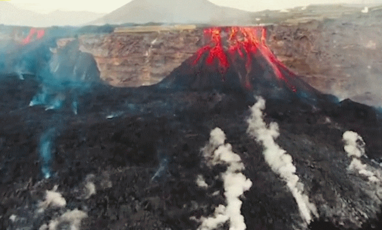마치 재난영화 속 한 장면을 방불케하는 이 모습은 화산에서 흘러나온 용암이 섬의 서해안 쪽으로 흘러흘러 바다에 가 닿은 상황을 담고있다. 뜨거운 용암이 바닷물과 만나면서 해안에는 여러 곳에 수증기가 피어오르는 것이 확인되며 그 주위는 완전히 검게 물들어있다. 특히 지난 3일(현지시간) 화산의 북쪽 봉우리 부분이 무너지면서 용암은 더 빠르게 분출됐다. 현지 재난당국에 따르면 현재까지 용암으로 덮힌 지역이 410만㎡ 이상으로 용암이 바다와 만나면서 생성된 암반층도 32만㎡ 정도다.