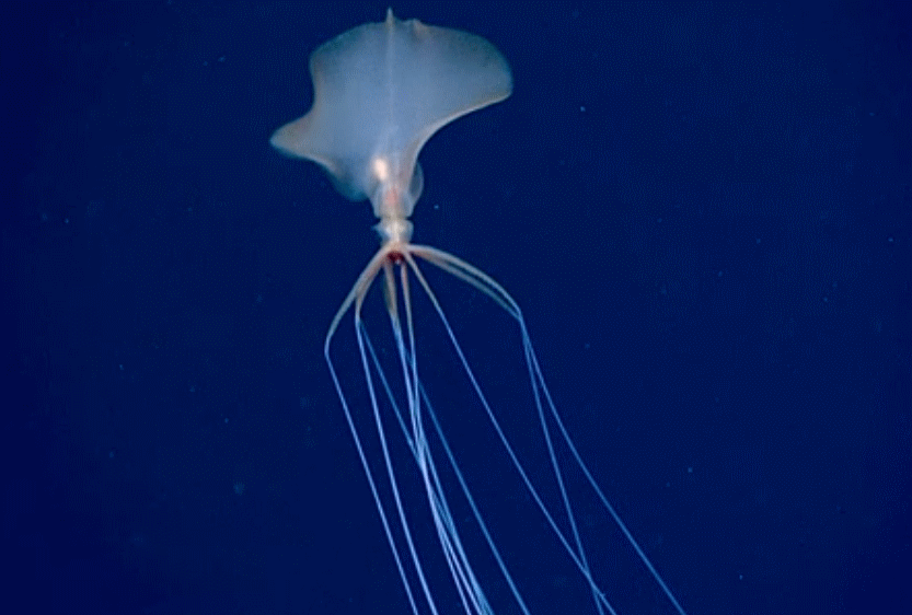 최근 미 해양대기청(NOAA) 해양탐사팀은 지난 9일(현지시간) 멕시코만 바다 식물을 조사하던 도중 수심 2400m에서 우연히 희귀 오징어인 ‘빅핀 오징어'(bigfin squid)를 목격했다고 밝혔다.