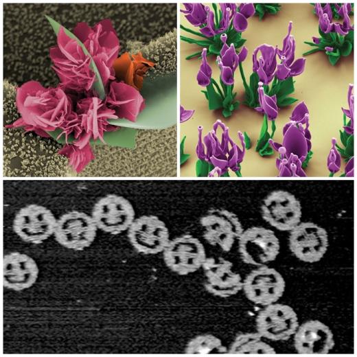 이미지들은 한결 같이 쉽게 믿기 어려울 정도로 화려하고 흥미로운 마이크로 세계를 보여준다. 특히 하버드 대학 연구진이 이산화탄소, 탄산바륨, 이산화규소 등으로 제작한 나노크기 ‘꽃’이나 캘리포니아 공과 대학 DNA 전문가인 폴 로더문드 박사가 제작한 ‘스마일 DNA’는 유독 눈길을 끈다.