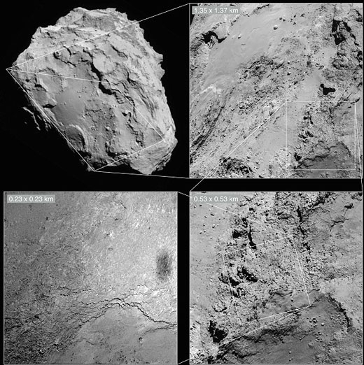 이에반해 지난 10년 간 무려 64억 km를 쉬지않고 날아간 로제타호는 현재 혜성 67P의 궤도를 돌며 지금도 생생한 표면 사진을 지구로 전송하고 있다. 얼마 전에도 로제타호는 과거 물이 흐른 것 같은 물결 무늬를 담은 혜성 표면의 사진을 촬영한 바 있다.