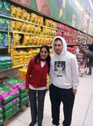 후드티에 체육복 차림의 메시는 친구와 함께 먹을거리를 사러 한 마트에 들어갔다.